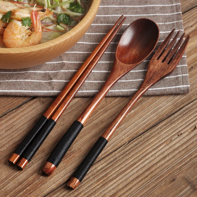 • Complete Set: Includes 1 fork (8.9 in), 1 spoon (9.3 in), and 1 pair of chopsticks (9.3 in).